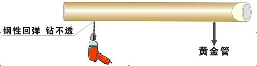 金屬保護強度高,金屬層保護受沖擊后產(chǎn)生強力反彈,全面保護管材不受損,不漏水